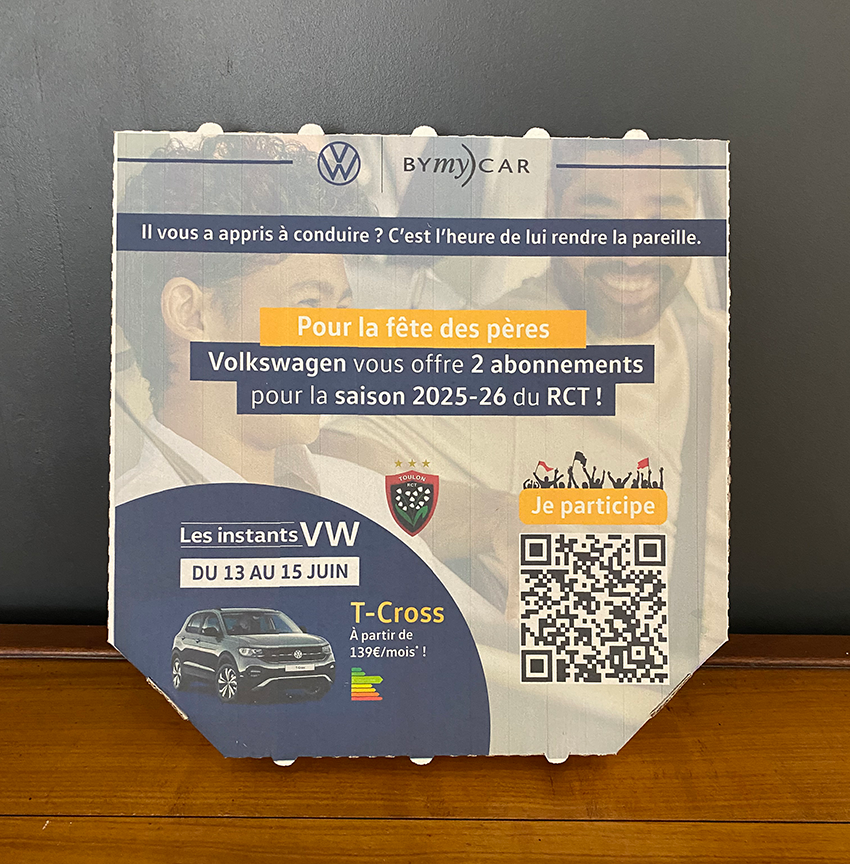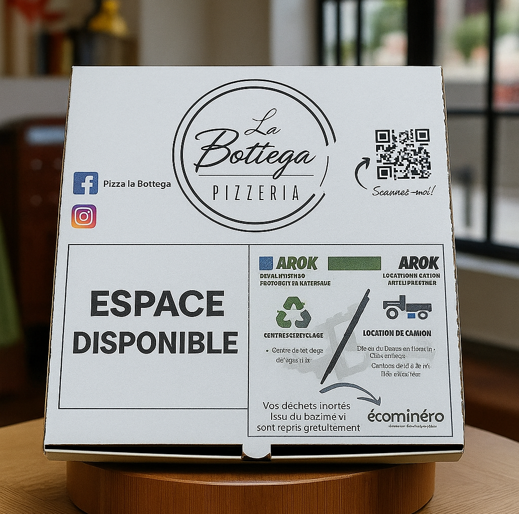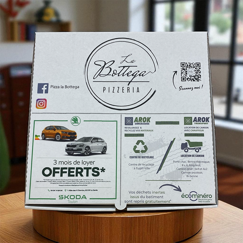 Contrairement aux flyers, affiches ou réseaux sociaux saturés de publicités, la boîte à pizza reste un support publicitaire rare et original.